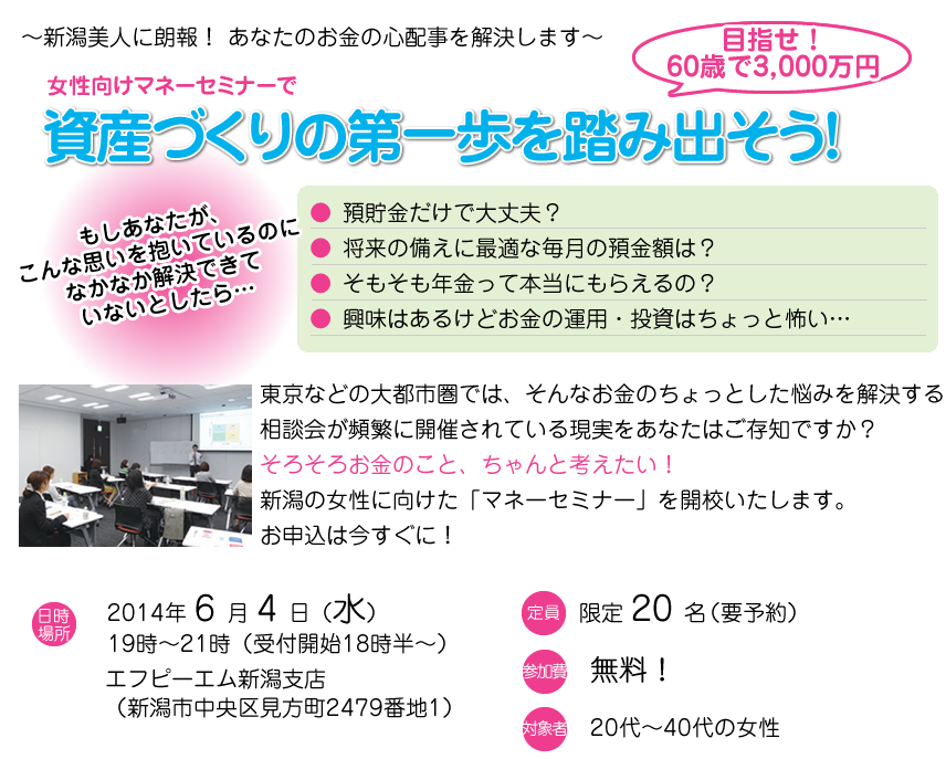 • 6月4日新潟開催 「女性向けマネーセミナー」