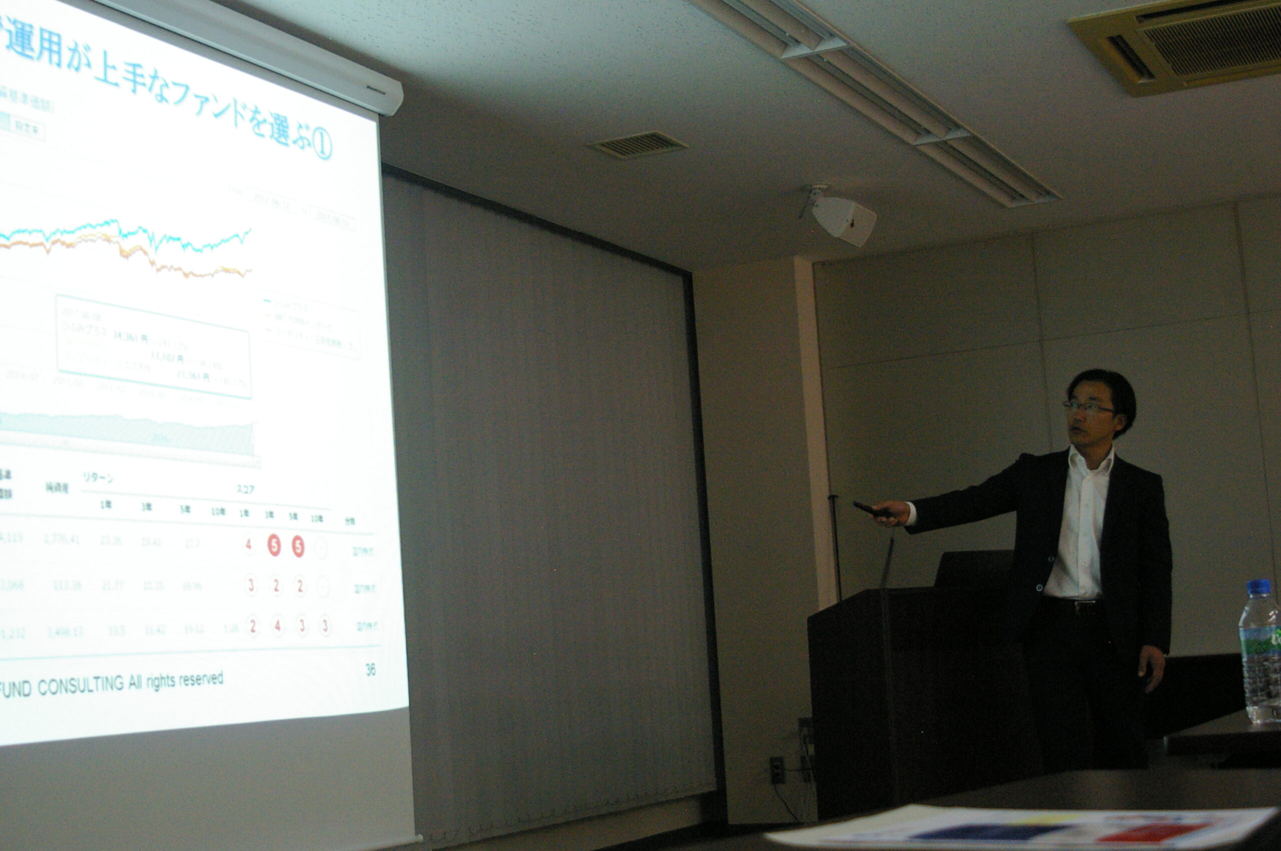 今回のセミナーでは、貧乏投資信託の見つけ方として短期売買や毎月分配型投資信託、最近テレビCMでもよく見るファンドラップについて詳しく解説をいただきました。