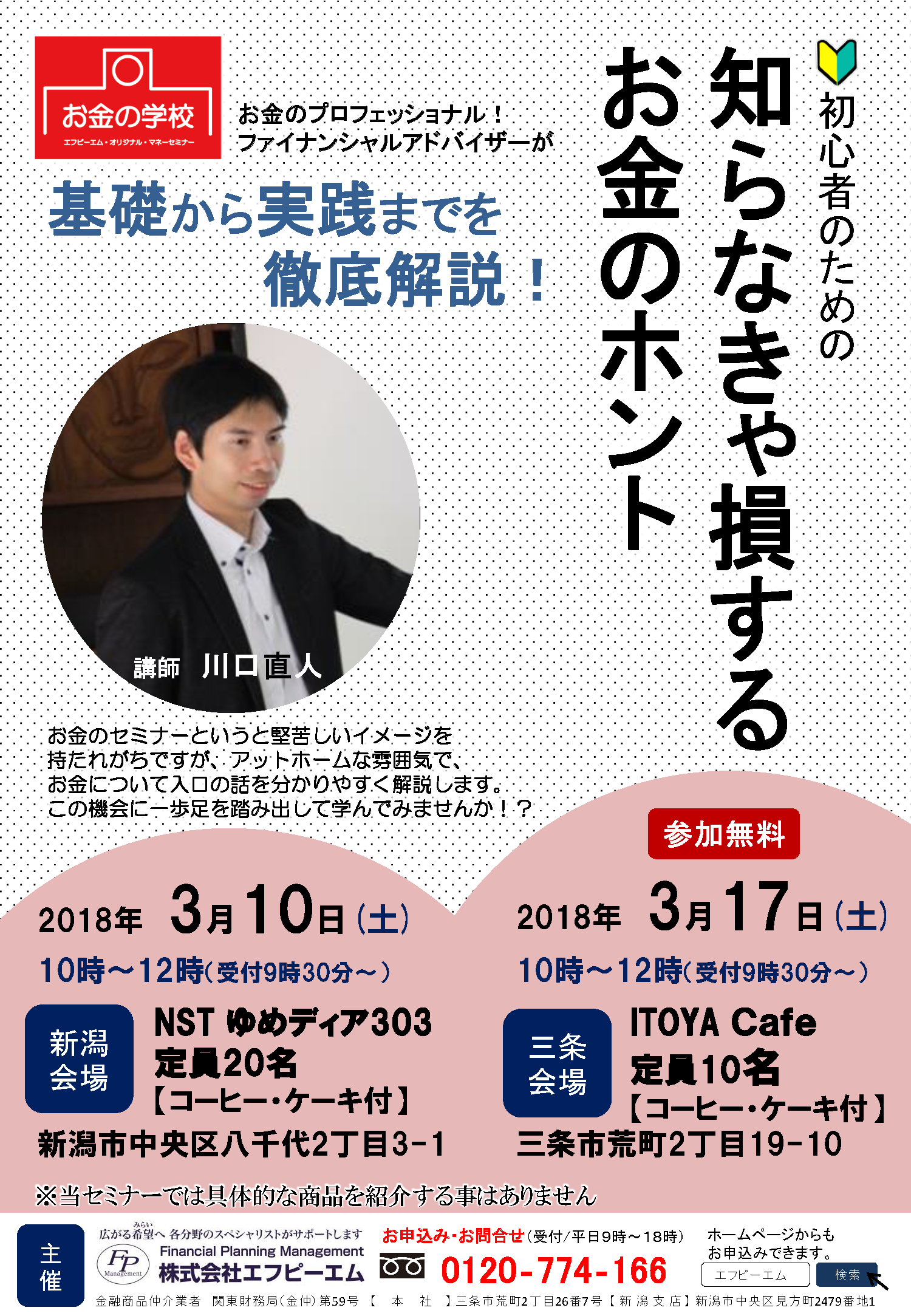 NEWSお知らせ TOP過去のセミナー情報3月17日三条開催「おひとりさまのマネーセミナー」 2018.02.09 過去のセミナー情報 3月17日三条開催「おひとりさまのマネーセミナー」 初心者のためのマネーセミナーのお申し込みはこちらから 申込みフォーム [おかげさまで満席になりました] アクセスマップ 三条会場:ITOYA Cafe お知らせ一覧 カテゴリ FPM News お知らせ 掲載情報 最新記事 2025.12.17 年末年始休業のお知らせ 2025.12.01 エフピーエムNews 第98号 出張マネーセミナーin本成寺中学校(三条市) 2025.10.31 エフピーエムNews 第97号 ジャパンモビリティショー開幕! クルマの未来が変わる今、「保険のこれから」について 年別アーカイブ 2025年 2024年 2023年 2022年 2021年