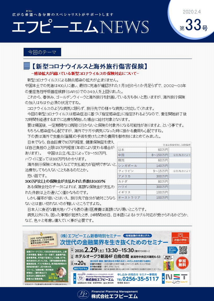 ◇新型コロナウイルスと海外旅行傷害保険