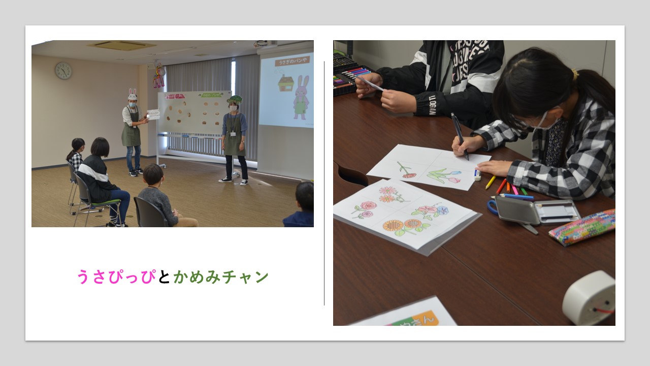 まずは私たちスタッフが演じるうさぎとかめのパン屋さんの劇をみながら、商品を買ってもらうためにはどうしたらいいのか考えてもらいました。